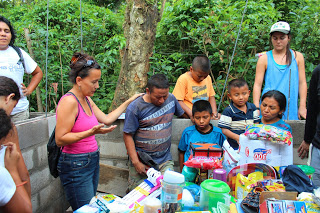 After leaving the house, we made a pit stop at Walmart to purchase about 280 bags of food to deliver to the people of Ahuachapan (see Jenni's blog for more!). We made the world's greatest (and most cramped) assembly line on the bus to prepare the bags of food. God has led our group to have excellent teamwork and a positive attitude and it's made the whole trip the best it could possibly be.